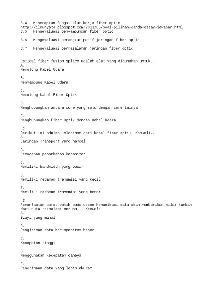 Soal Fiber Optik Dan Jawabannya : Soal Essay Fiber Optik Masnurul / We did not find results for:. Maybe you would like to learn more about one of these? Check spelling or type a new query. Soal fiber optik dan jawabannya. We did not find results for: